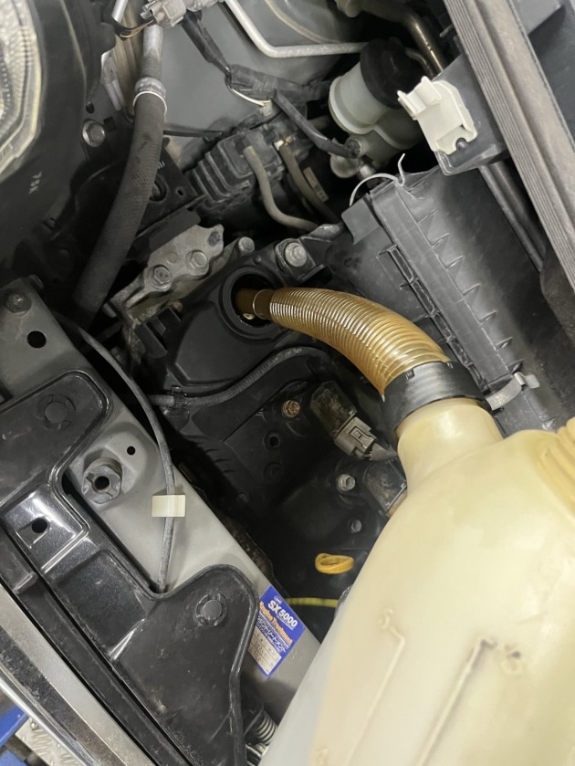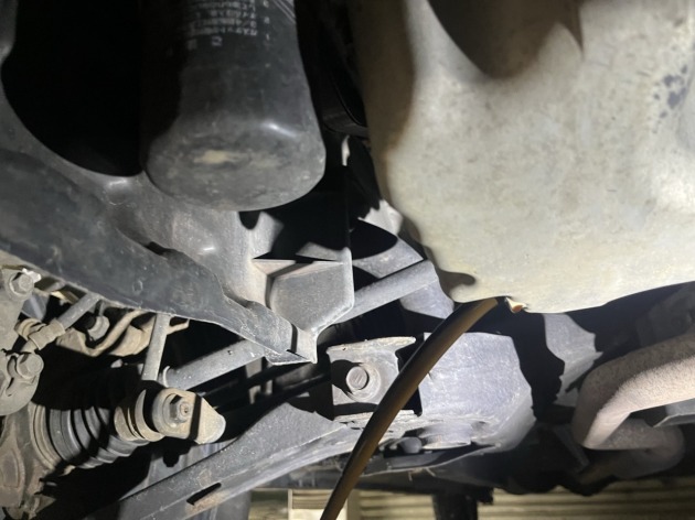 三菱デリカD5の定期的メンテナンスのご依頼を頂き入庫しました。 今回のメンテナンス内容はエンジンオイル/エレメント交換です。 まずはエンジンオイルを抜くため、カバーを外します。 エンジンオイルを抜きエ