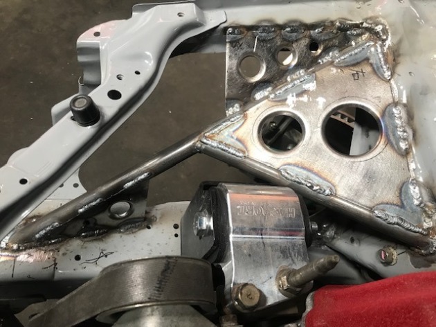 1か月後に筑波サーキットで行われるアタックにエントリーしていて、2月上旬にはフェリーに乗せるため今回はストラットからフロント側を補強を入れました。