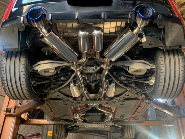 こだわりのφ60.5×2フルデュアルレイアウトで純正比約40%の排気抵抗低減されています。