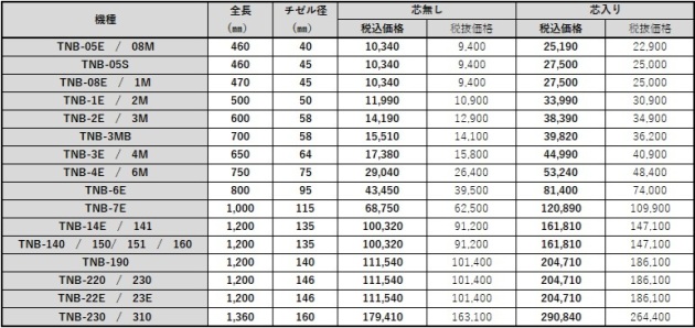 ◉ 特殊製作チゼル(ロッド)の価格表は下記からご覧いただけます。