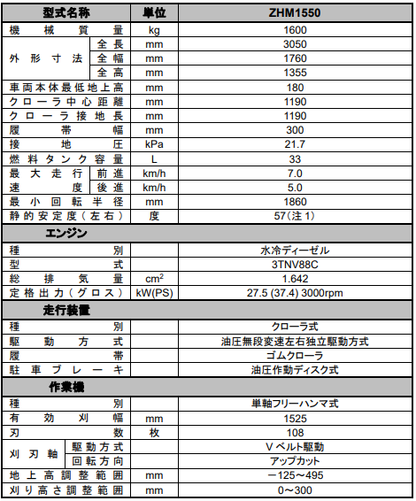 点検整備、モニター交換、燃料フィルター・ストレーナー・エアフィルター・エレメント・オイル交換、各部電装確認、エンジン各シリンダー圧縮比計測、Vベルト全交換、モア刃新品、バッテリー交換、モアシャフト軸ベアリング交換、塗装