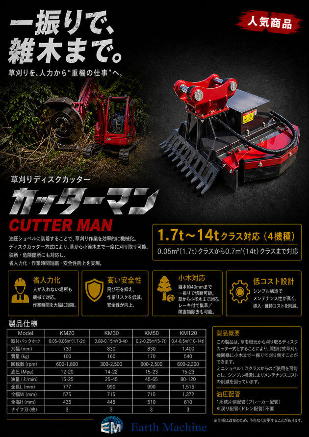 人力から重機の仕事へ変える草刈りディスクカッター「カッターマン」