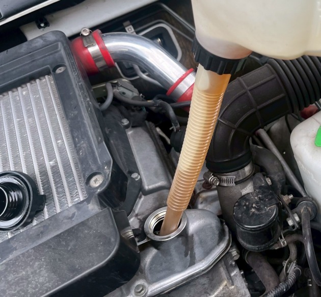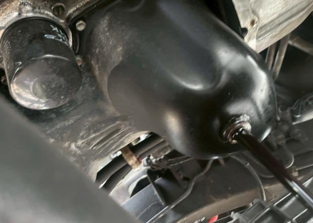 スズキ23ジムニーのターボエンジンオイル/エレメント交換完了! 2025年10月5日 スズキ23ジムニーのエンジンオイル/エレメント交換ご依頼を頂き入庫しました。軽自動車のターボエンジンはメンテナンスの影響が顕著に出てくるので注意が必要です。先ずはエンジンオイルを抜きます。今回はエレメントフィルター交換もします。エンジンオイルはザーレンの5W-40を使用します。エンジンオイルを規定量入れます。エンジン始動後にレベルゲージを確認して作業完了です。この度はありがとうございました。