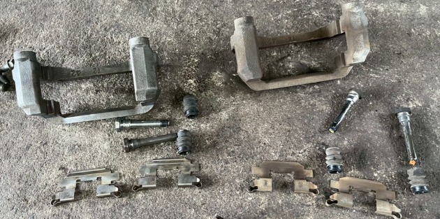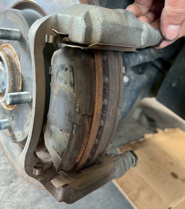 ブレーキパッドは残っていますが、スライドピンの動きが悪く、内側はローターの錆で当たりが悪い状態です。