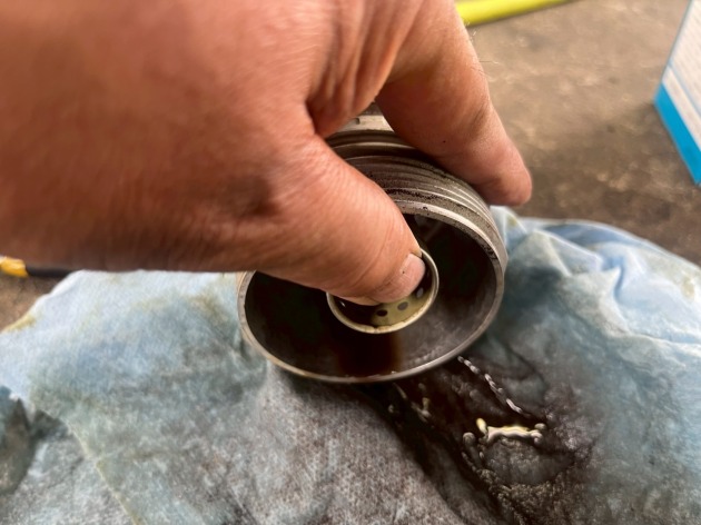 中身を清掃すると粒状の砂のような・・・鉄粉なのか?鉱物油の不純物か?かなりの量が出てきます。