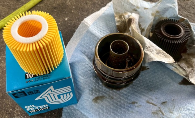 パッソの汚れ酷いオイルフィルターケースを清掃してエレメント/エンジンオイル交換