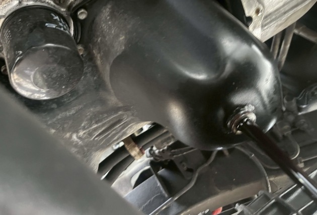23ジムニーのエンジンオイル(ザーレン・ガイア 5W-40)&エレメント交換 2025年12月6日 スズキ23ジムニーが定期的メンテナンスのエンジンオイル&エレメント交換で入庫しました。エンジンオイルを抜いて、フィルターエレメントも外します。今回使用するオイルは、ザーレン・ガイア 5W-40です。フィルターエレメントを交換して、規定量のエンジンオイルを入れます。エンジン始動後にレベルゲージを確認して、作業完了です。この度はありがとうございました。