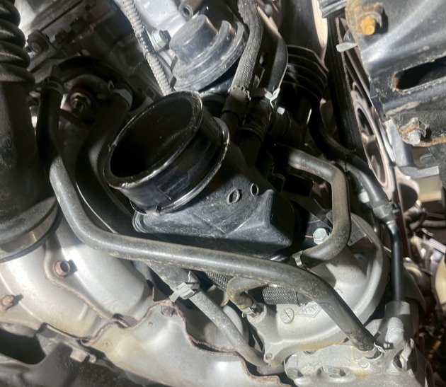 同じスバル車のEJエンジンとはブローオフバルブの位置が違い、FAエンジンはエキマニの下側で配管します。