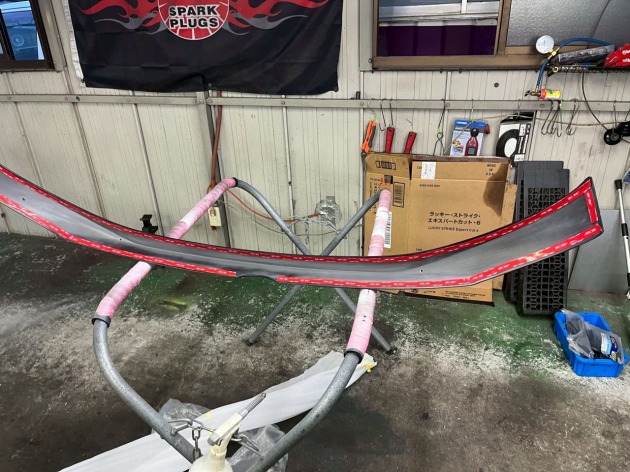 続いて、ウエストスポイラーは両面テープを付けて取り付けします。