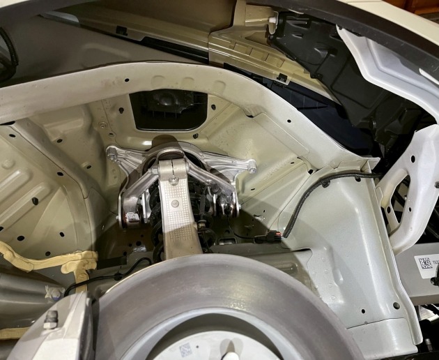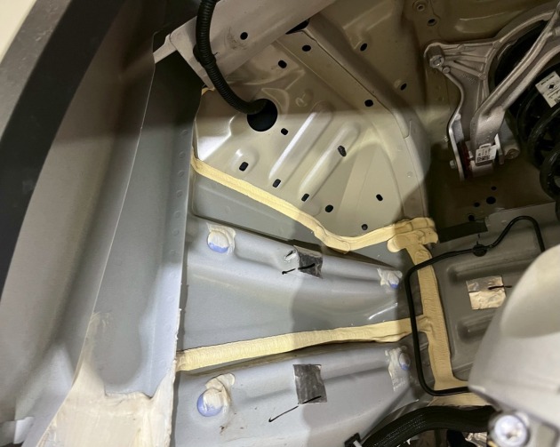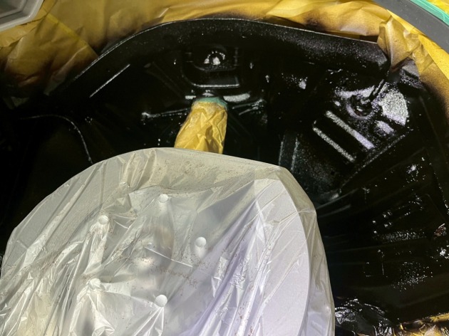 アンダーパネルを外し、タイヤハウス内のインナーライナーも外します。