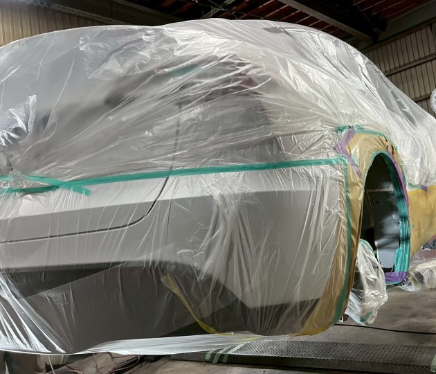 施工する箇所には電子部品も多いので、保護する箇所を確認して養生作業します。