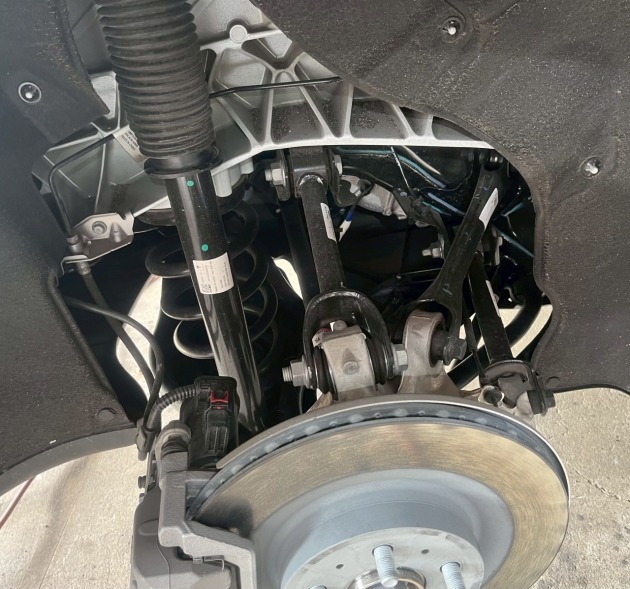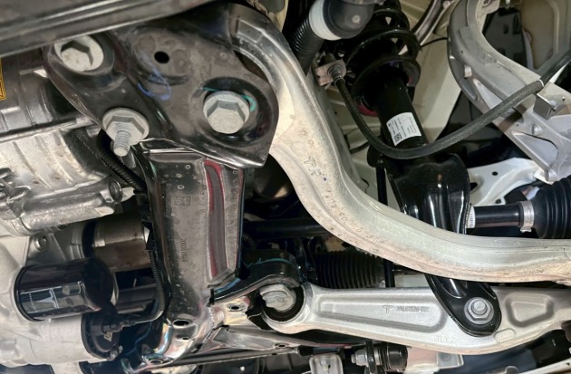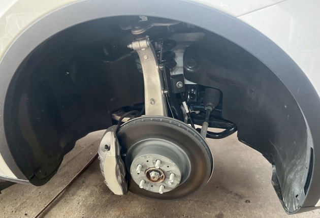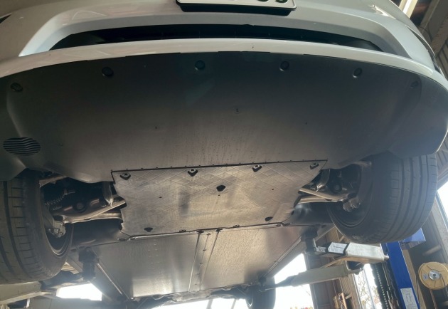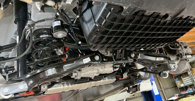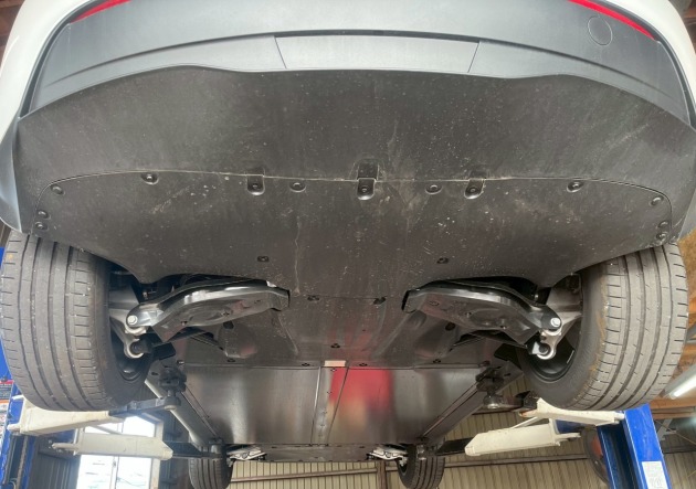 車を上げて腹下を見ると、空力燃費向上の為にアンダーパネルでフラットになっています。