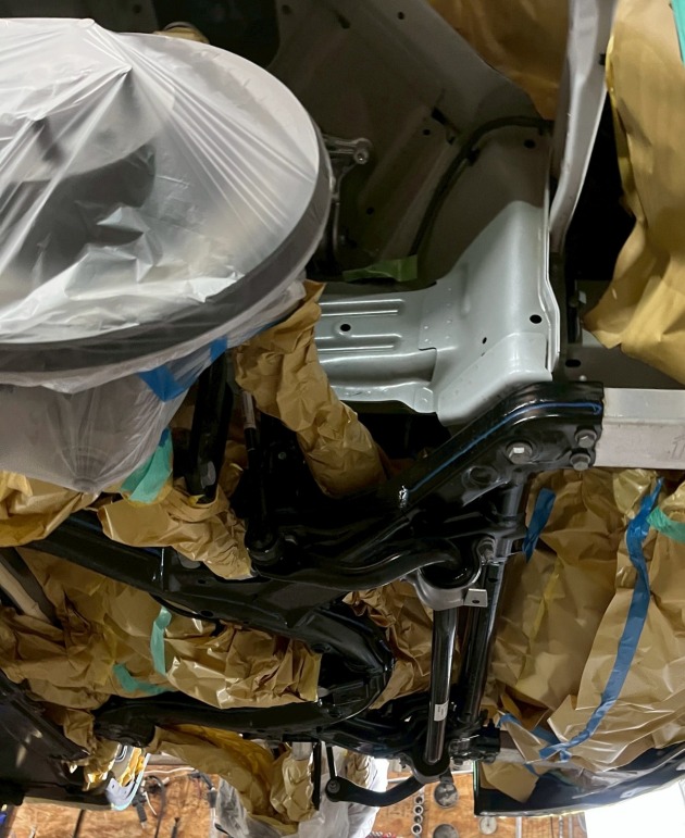 カバー類を外すとアルミ材も多くはありますが、ボディやメンバーやアーム類はスチールなのでしっかり防錆します。