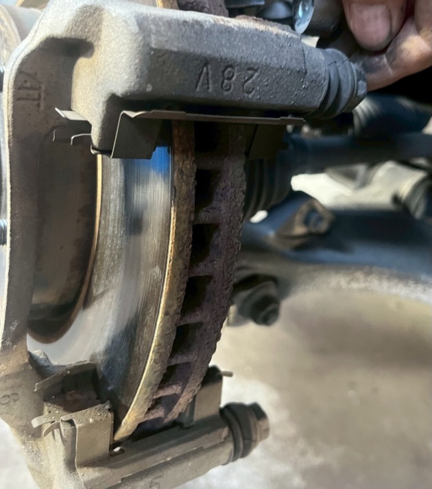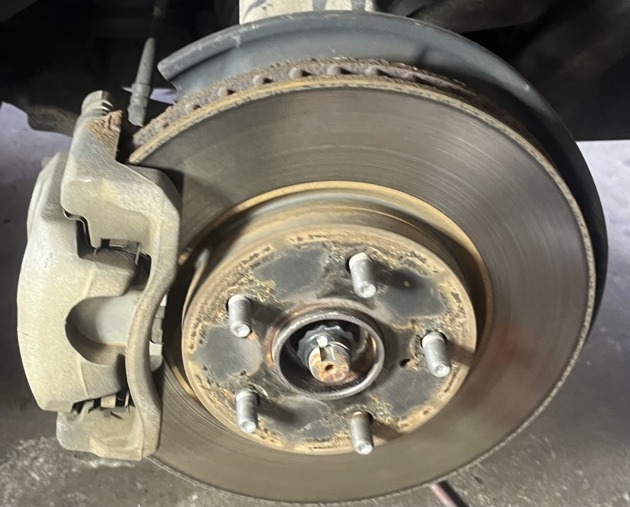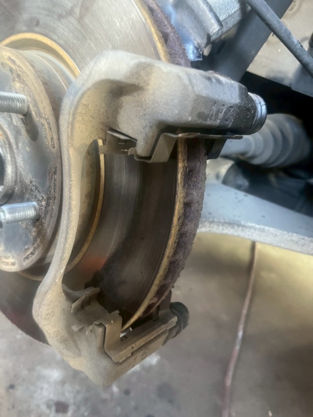 タイヤを外して見ると、ブレーキディスクは少し錆があるもののまだきれいに当たってはいます。