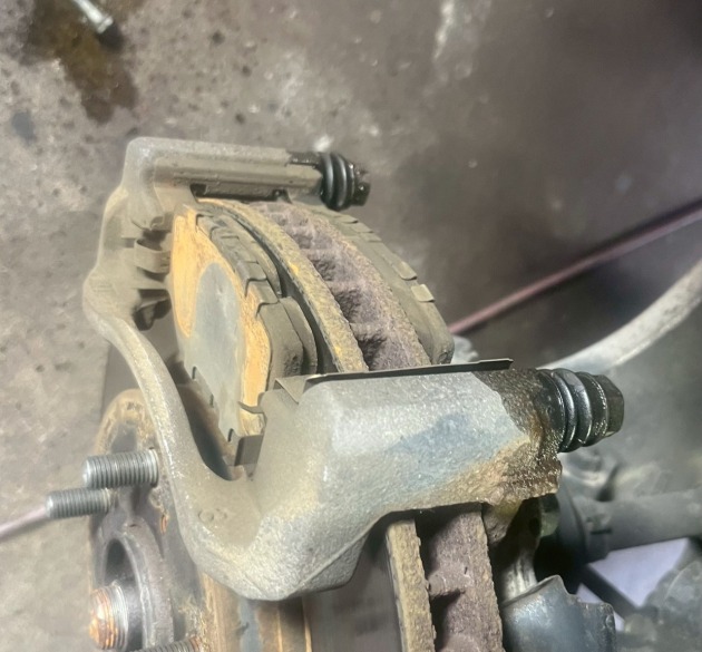 反対側もやはり同様にスライドピンが固まっていました。