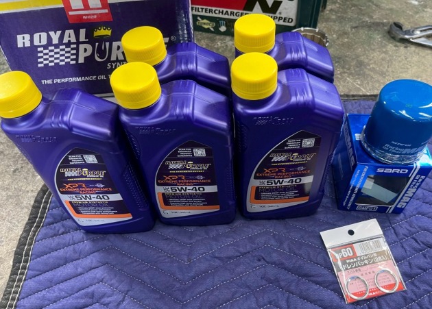 ロイヤルパープルのXPR 5W-40とサードのレーシングオイルフィルター、それとドレンパッキンです。