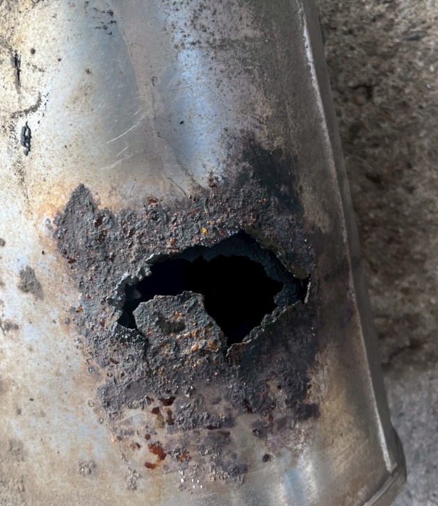 マフラーからの排気音がおかしく、注視してみると