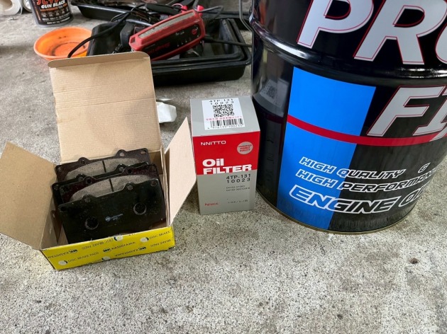 FJクルーザーのオイル/エレメント/ブレーキパッド交換でキャリパー固着発見してリサイクル品に交換修理!
