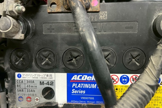 バッテリーはそれなりに数値はありますが弱っており、令和3年の物で短距離走行も多くアイドリングストップも使用していたようです。