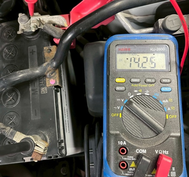 先ずはバッテリーとオルタネーターの発電量を電圧計で見ます。