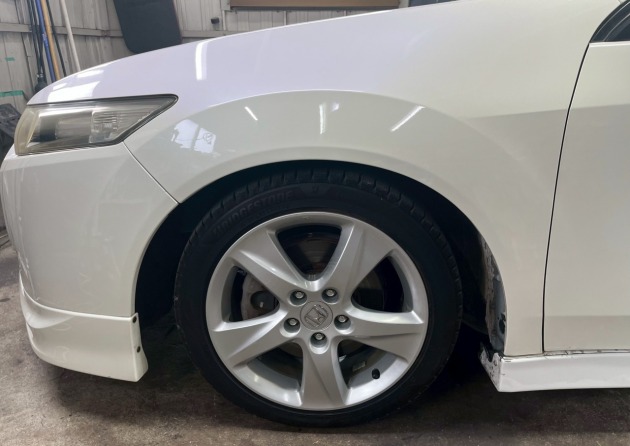 本格的な雪が降る前にアコードワゴンの車高上げ調整してクリアランスを確保 2025年12月24日 ホンダアコードワゴンの車高調整ご依頼頂き入庫しました。本格的な雪が降る前に車高を上げてクリアランス確保します。車高調のロックシートはすんなりと回り、前後3センチ程アップさせました。エアロパーツも付いているので割らないように上げました。雪道に備えてクリアランスは確保出来ました。この度はありがとうございました。