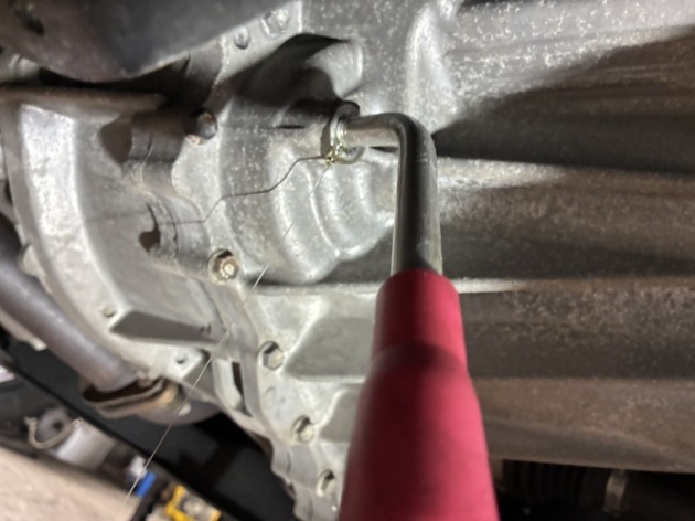 注入口が開く事を確認しましたので、ドレン口を開けてオイルを抜きます。