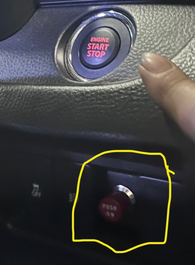 スイッチを押しながらエンジンボタンを押すことでエンジンを掛けることが出来ますので、
