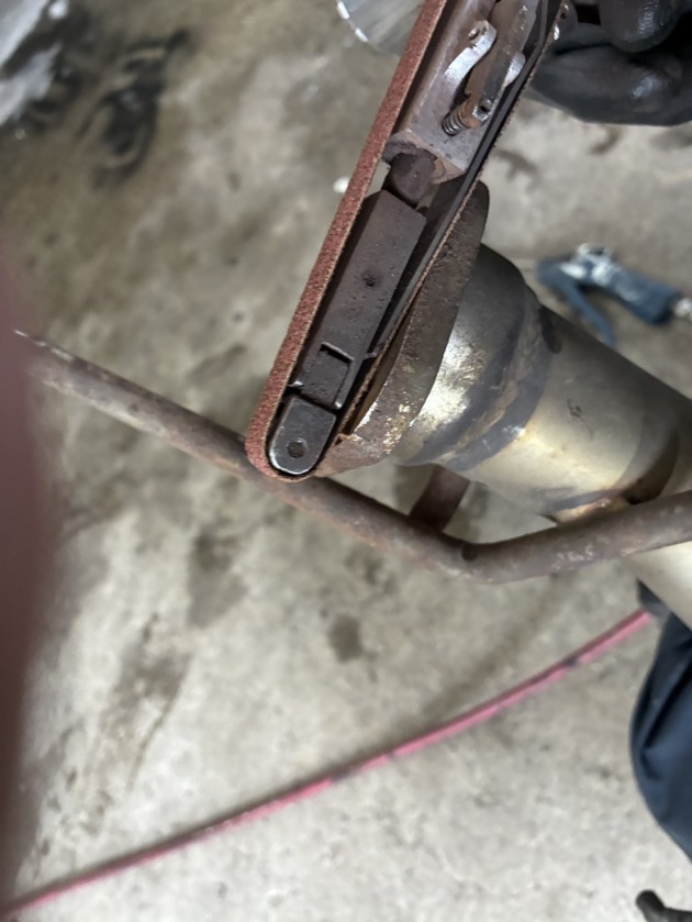 マフラー接続箇所のサビや汚れを削り落としてから取り付けしました。