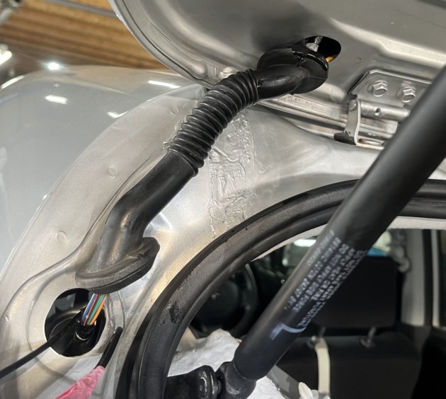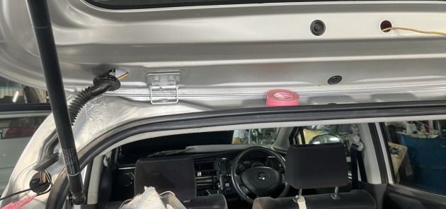 ドラレコのリアカメラ配線は、リアゲートを通して引き込みします。