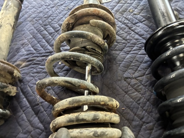 まず始めの作業内容としましては、サスペンションのバネ折れ、ショックのオイル漏れもしているので、4本とも交換する整備作業となります。