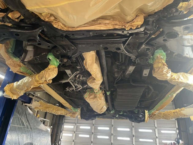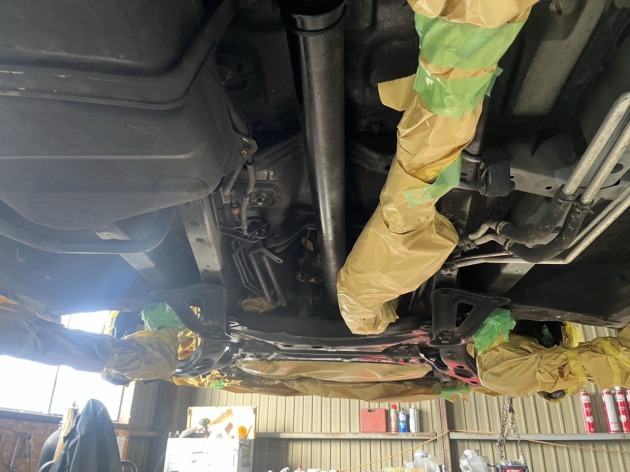 30系ヴェルファイアの下回り錆を削り落としてエンドックス防錆施工