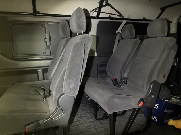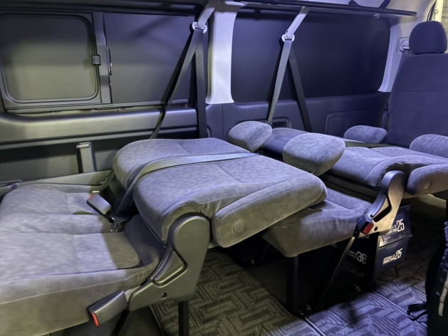 今回リクライニング加工する座席は、後席1列目と2列目の4脚となります。