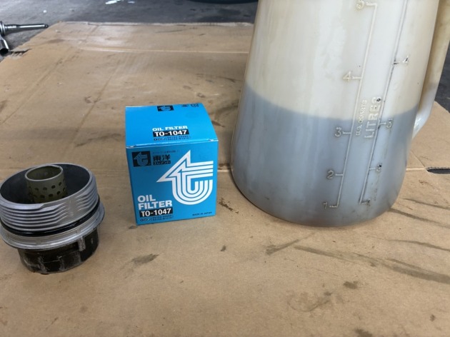 今回用意しました新しいエンジンオイル/エレメントに交換します。