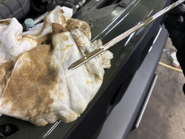 オイルレベルゲージを確認し、オイル交換作業完了です。