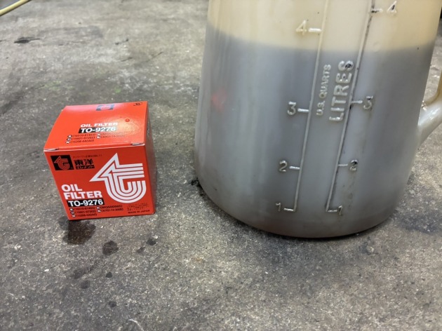 エレメントを外し、新品エレメントを取り付けて新品エンジンオイルを注入します。