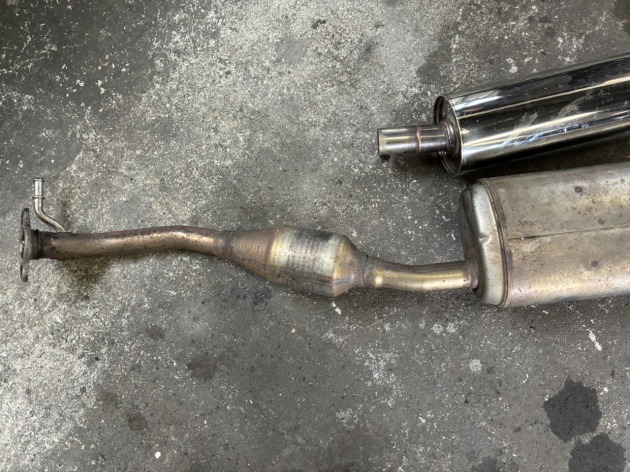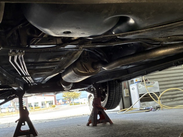 まずは、車両から純正マフラーを取り外します。
