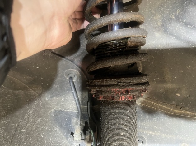 この状態では異音やガタつきもかなり目立ち、乗り心地がとても悪くなっています。