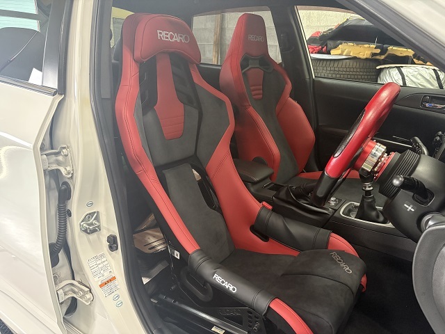 スバルインプレッサWRXGVBのO様、シート交換でご来店です。 交換するシートは、新商品のRECAROフルバケットシートRSSです。 RECARO RSS UT CG/RD 生地〈サイド / センタ