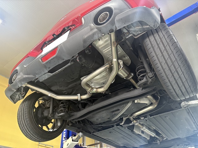トヨタ AE86/FT86/GR86, HKSマフラー/キャタライザー/エキマニ/エキゾースト関連パーツ 交換・取り付け, コンピューター現車セッティング/ECU書き換え/VPRO/フラッシュエディター/ROMチューン/MasteryECUトヨタGR86アプライドD(6MT)のM様、EXマニ交換&ECU書き換えでご来店です。 ↑ノーマルEXマニ ↑HKS SUPER MANIFOLD with CATALYZER GT-SPEC取付け