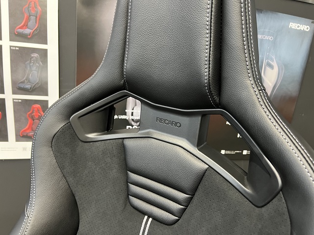 日産GT-R R35のM様、シート交換でご来店です 交換するシートは、新商品のRECAROフルバケットシートRSSです。 RECARO RSS UT CG/RD 生地〈サイド / センター/ バック