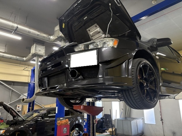 ミツビシ ランサーエボリューションⅩのK様、エンジンオイルの交換でご来店です。