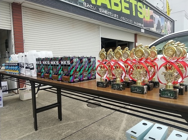 この後は各クラスのタイム上位者の表彰式です。トロフィーや景品を進呈します。