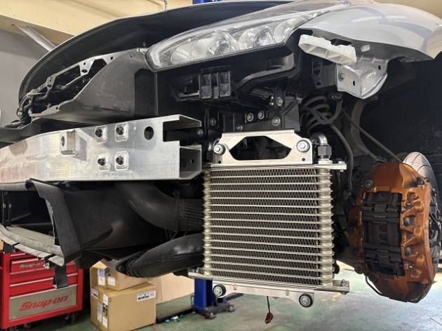 オイルクーラーコアをフロント左フェンダーに設置し、最大限冷却性能を確保します