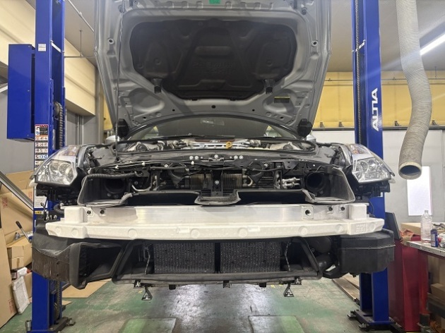 取付けは、フロントバンパーを取り外しクーラーの取付け位置を確保します。