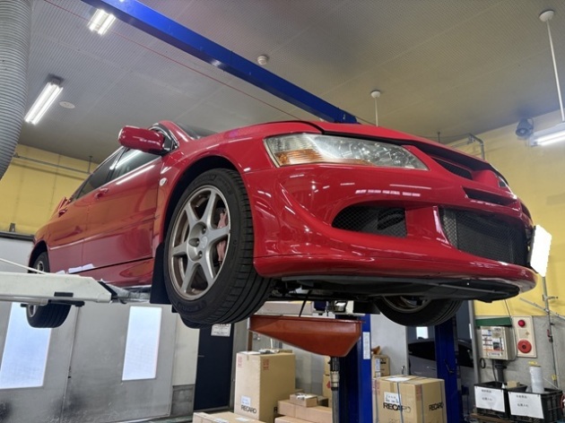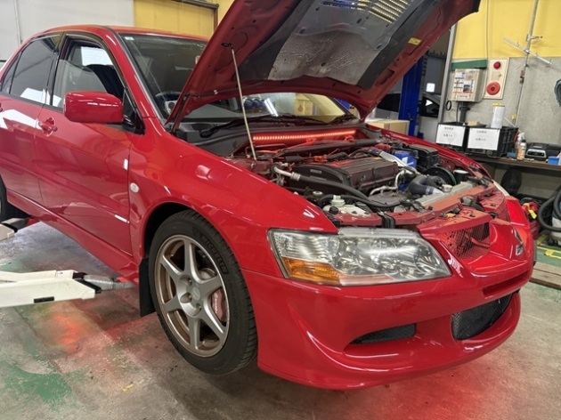 ミツビシランサーエボリューションⅧ CT9AのT様オイル交換で入庫です。