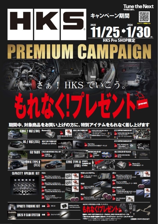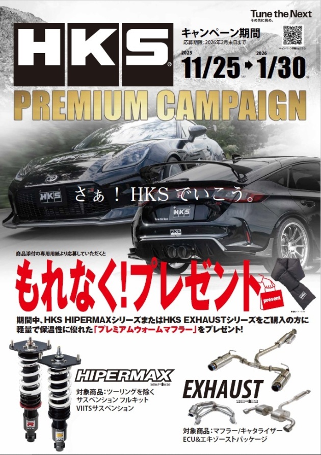 「HKS PREMIUM CMPAIGN」は2026年1月30日まで開催中です。