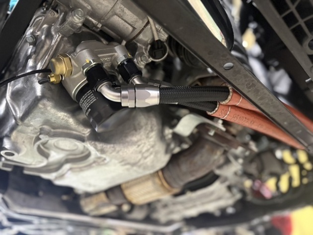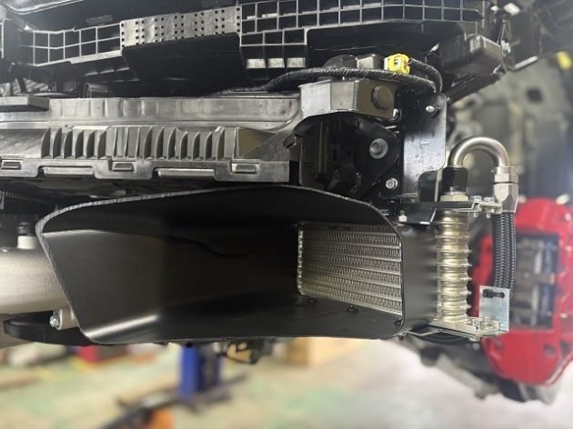 オイルクーラー本体は、左インナーフェンダー内部に取付けするタイプになるので、水温やエアコンへの影響が少なく全てが効率よく冷却できます。
