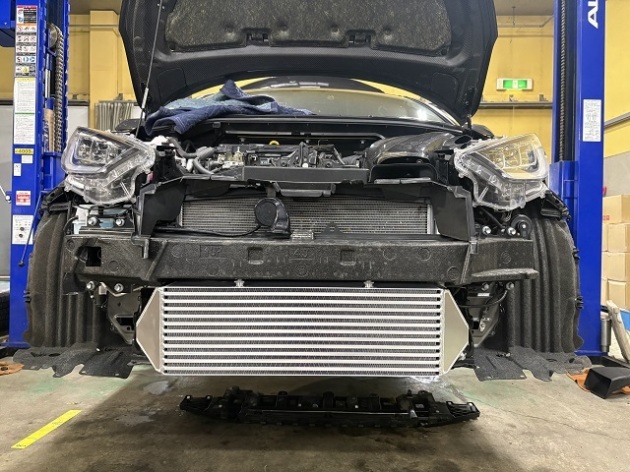 トヨタGRヤリスGEN2(6MT)のT様、その2です。 インタークーラーの交換のためバンパーなど脱着になります。 パイピングキット取付けのためサージタンクとスロットルボディーを外します。 インターク