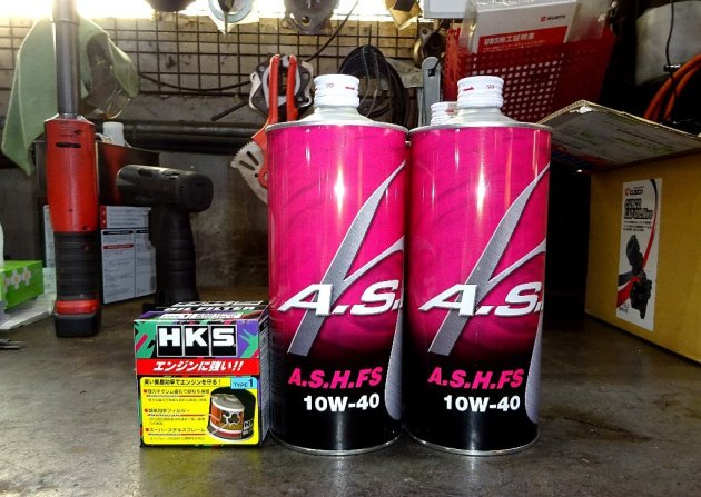 エンジン A.S.H FS 10W40 HKS オイルエレメント 交換