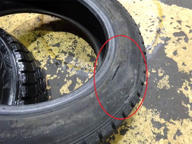 日産 ルークス ML21S K6A パンク走行不能 搬送して入庫しました (;^ω^) 雪穴に落ちて 2本 バースト してます! 急遽 ヨコハマ IG70 165/65R14 9分山の中古タイヤ 購